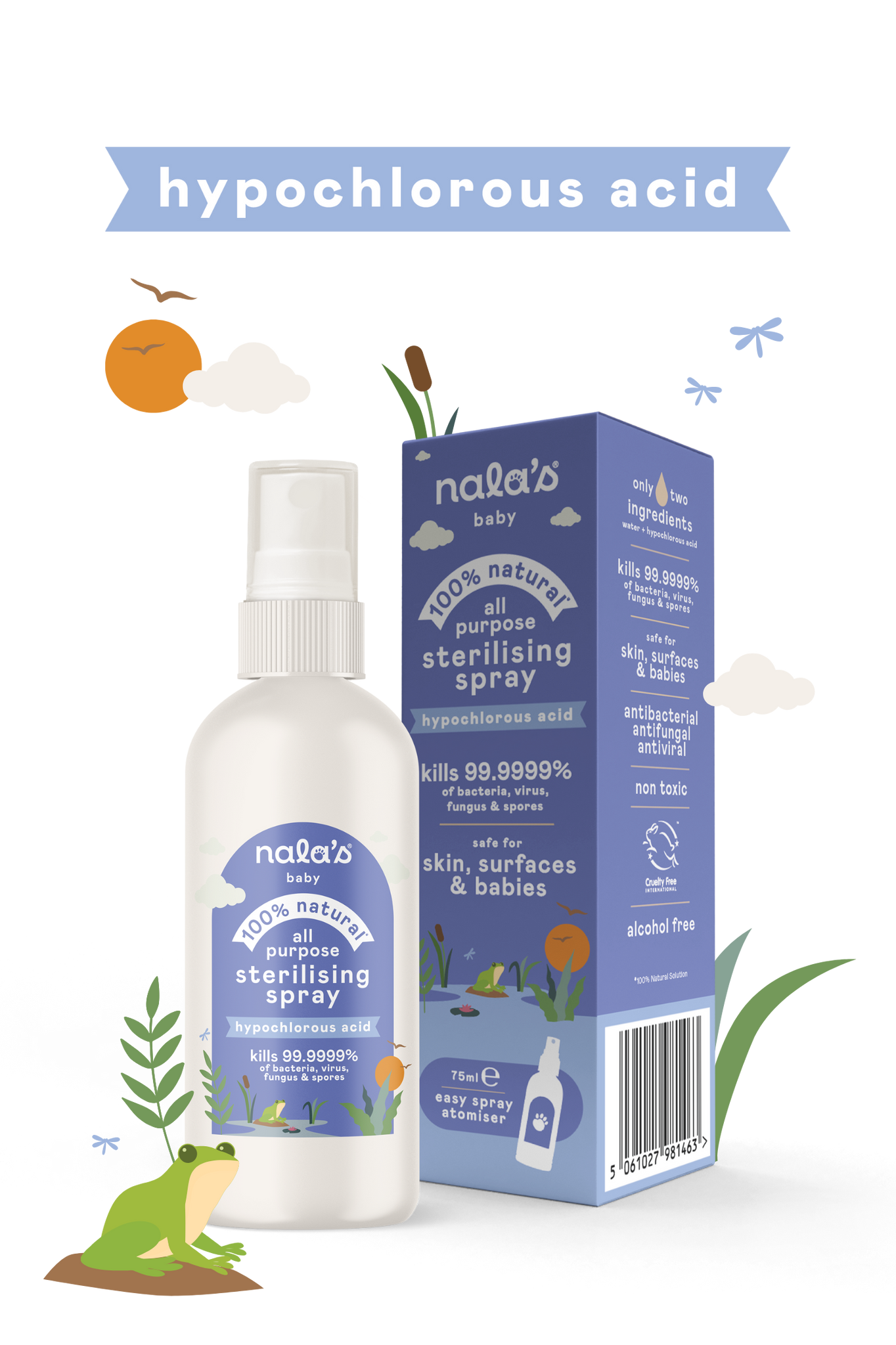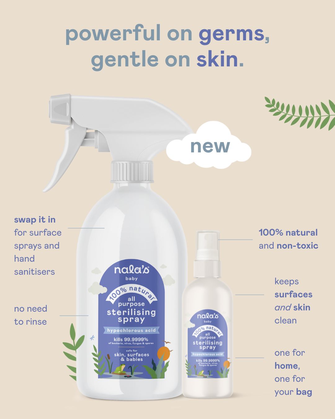 It’s called Hypochlorous Acid, and is a natural part of the immune system. It’s made by your white blood cells to fight off invading pathogens. Very powerful on germs, yet gentle on skin. It’s even safe for babies and sterilising dummies. That’s why we bottled it. Pure, powerful, and skin-safe protection.