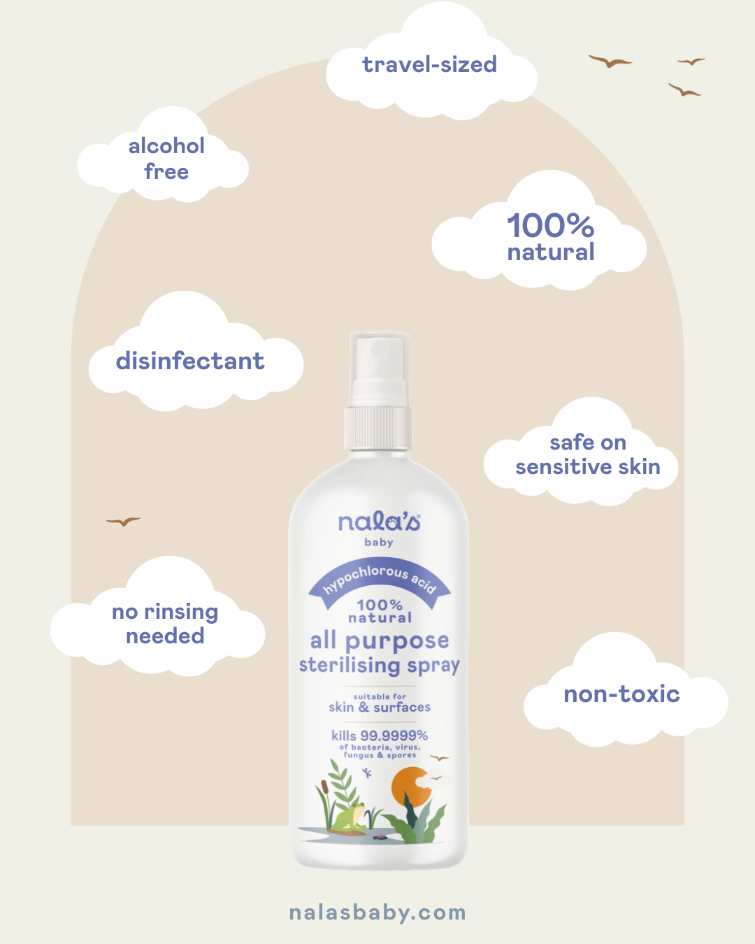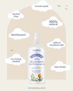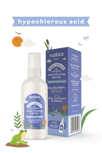 Our Hypochlorous Acid Sterilising Spray wipes out 99.9999% of bacteria, viruses, spores, and fungi - no rinsing required. Made with just two ingredients; hypochlorous acid and water, the 100% natural formula is perfect for surfaces, toys, hands, and dummies - keeping your home squeaky clean and worry-free. Simply spray and leave for baby-safe hygiene.